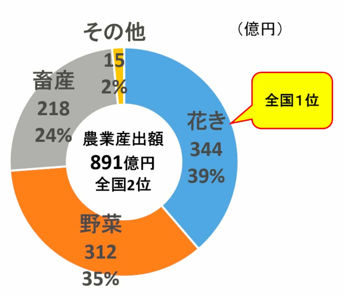 電照菊をはじめとする花き類、キャベツ・ブロッコリー・トマトなどの野菜類、そして、畜産・酪農も盛んで、いずれも収益性の高い農業が営まれています。